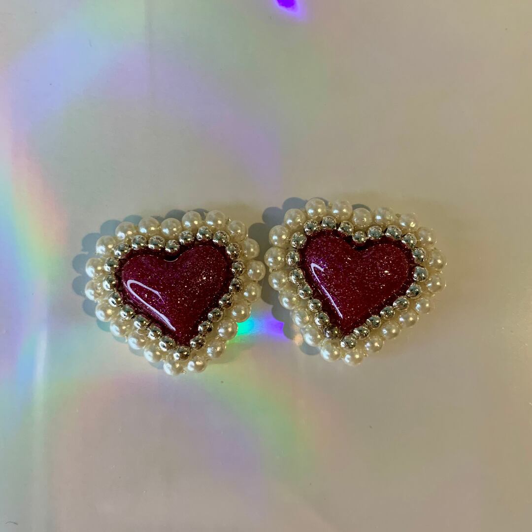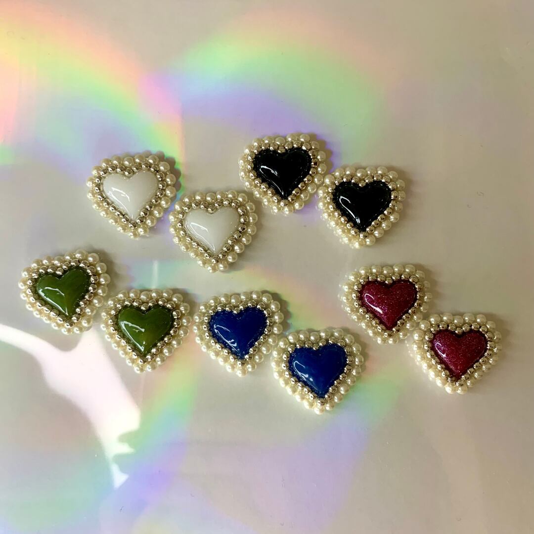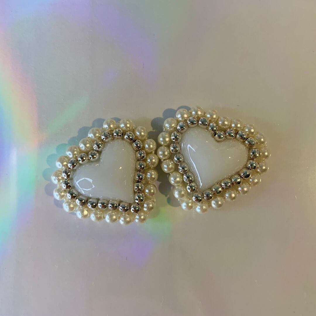 ハートは優雅に銀色のビーズで縁取られ、エレガンスの要素を加えています。