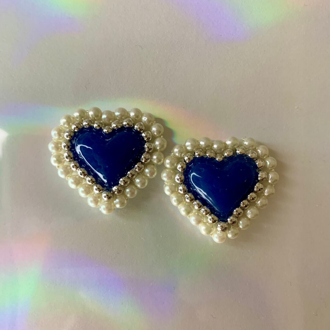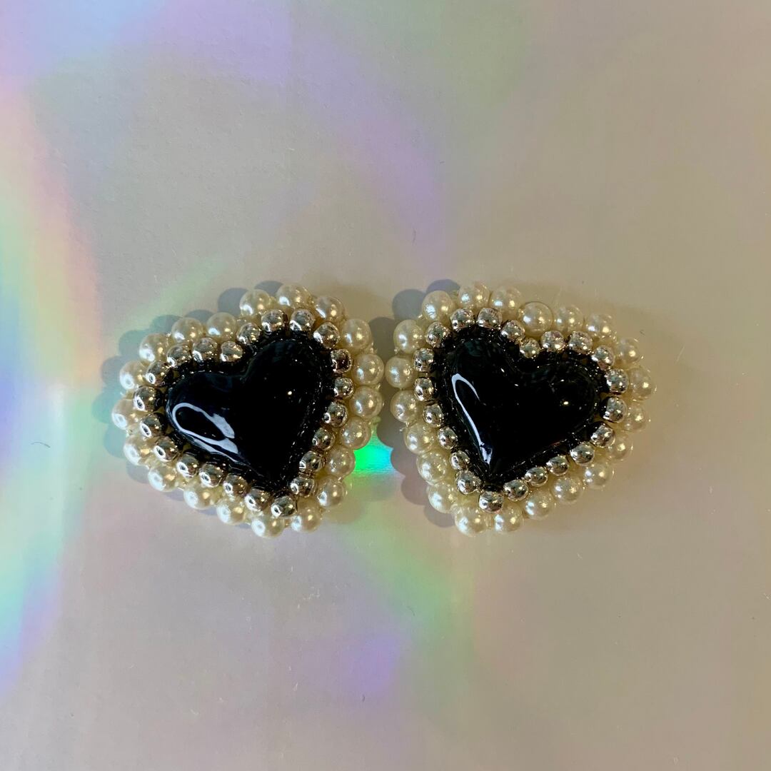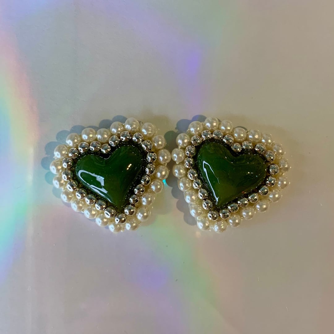 ハートは優雅に銀色のビーズで縁取られ、エレガンスの要素を加えています。