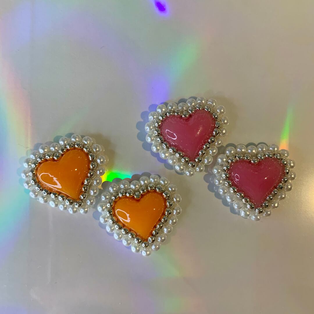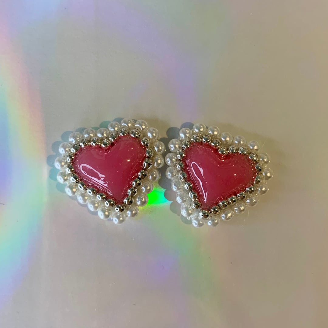 ハートは優雅に銀色のビーズで縁取られ、エレガンスの要素を加えています。