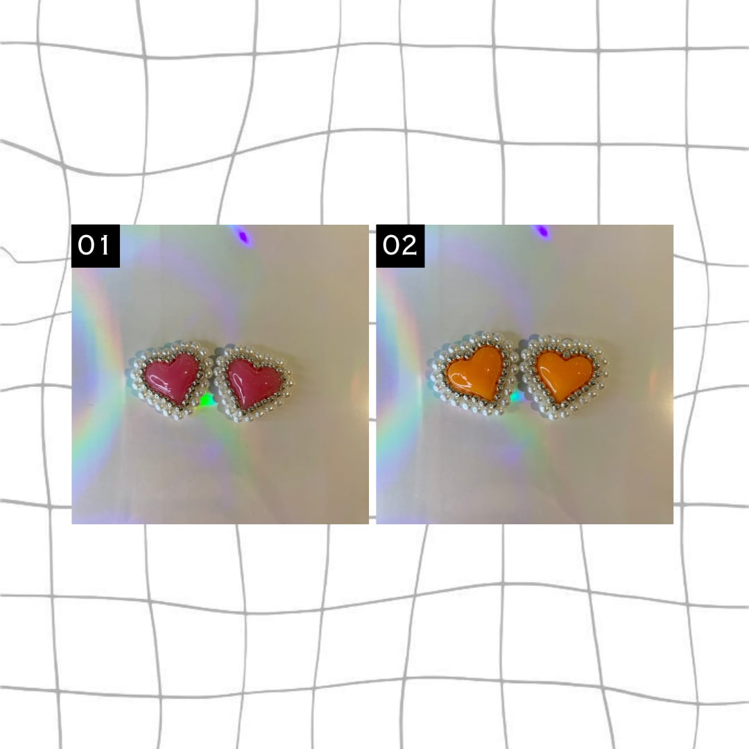 艶やかなレジンのハートモチーフが、この繊細なデザインの魅惑的な中心となっています。