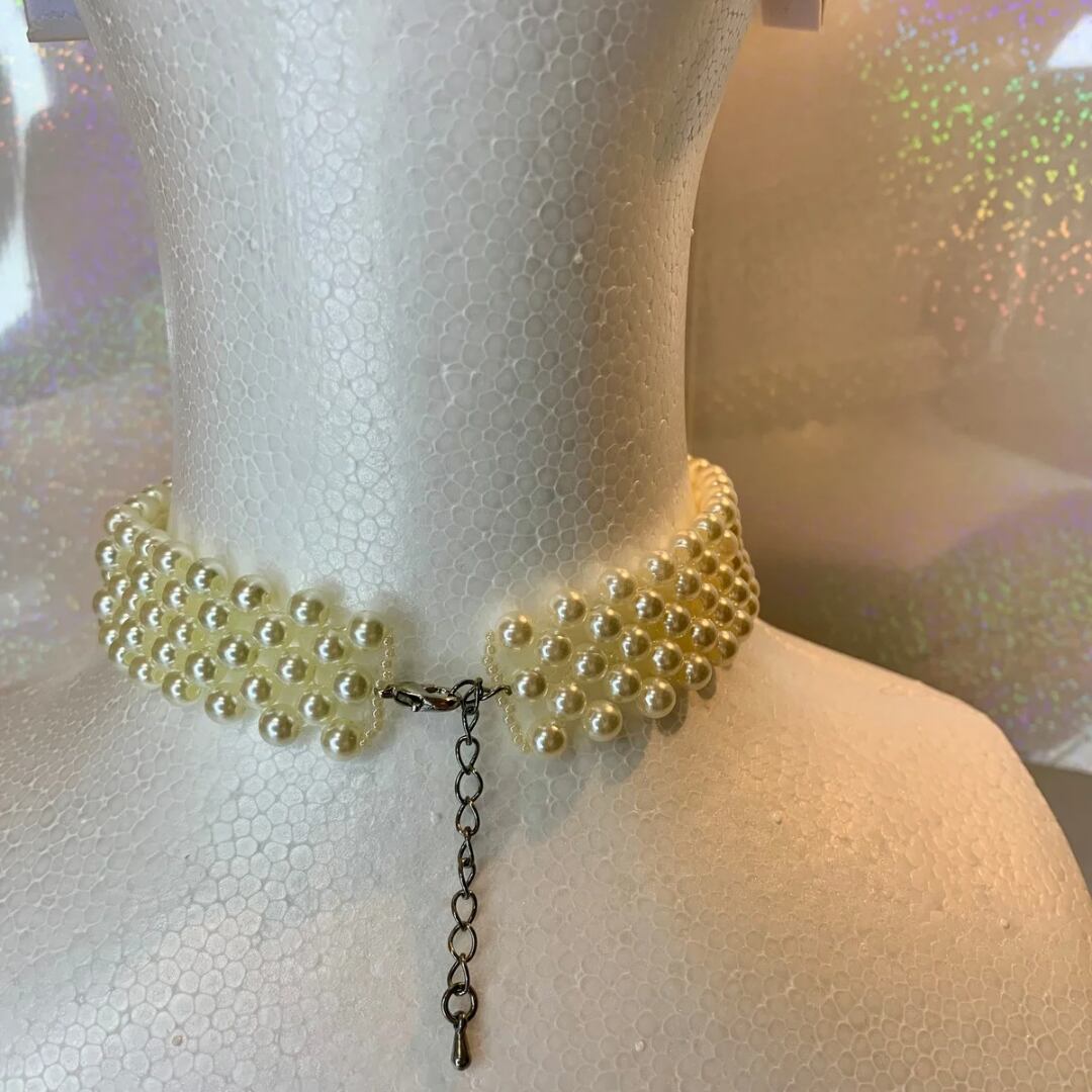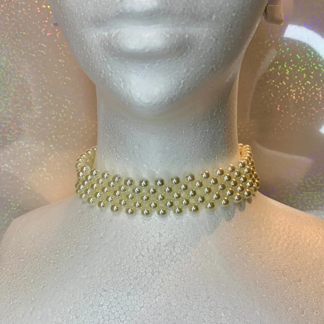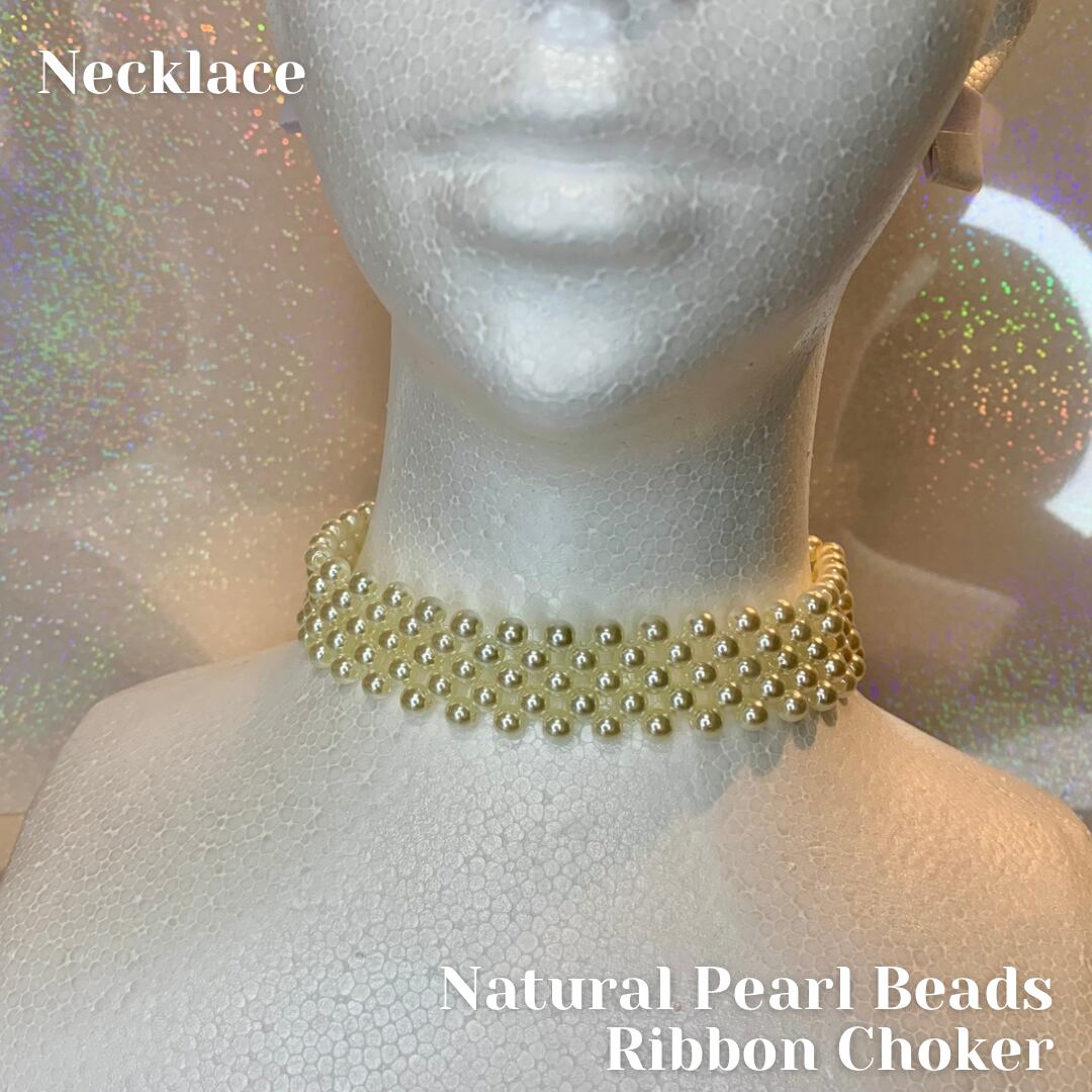 ナチュラルカラーのパールビーズをシンプルに編み首元にフィットするチョーカーです。