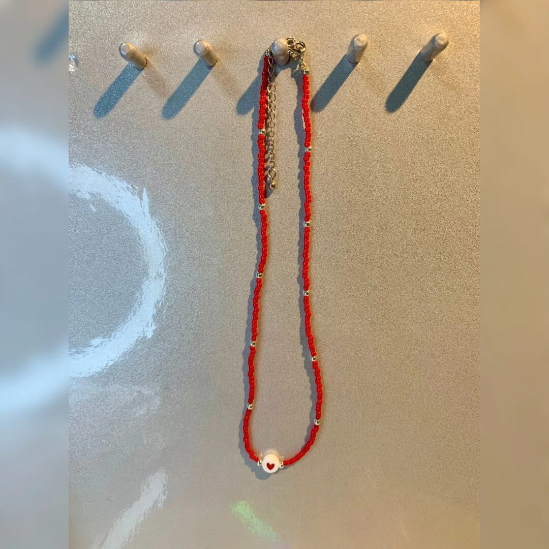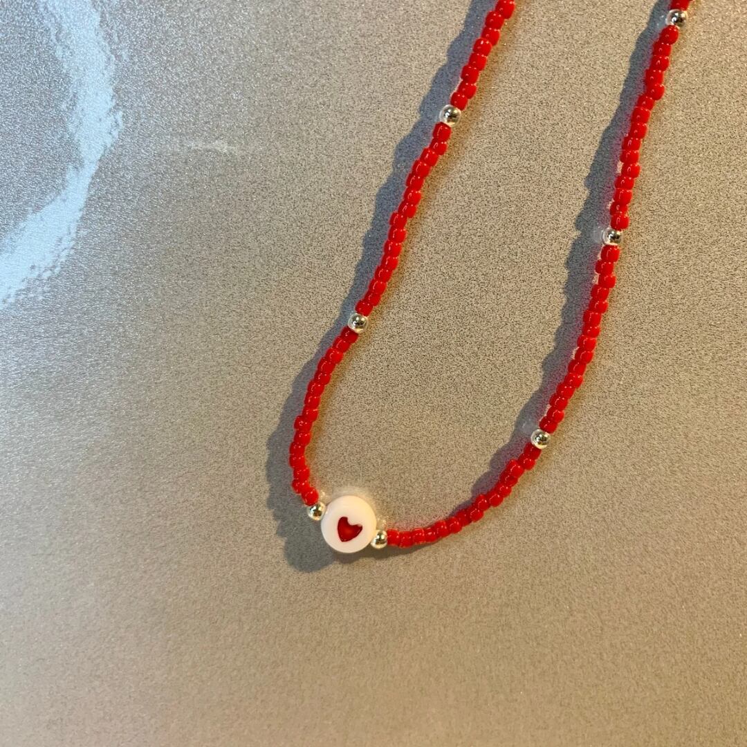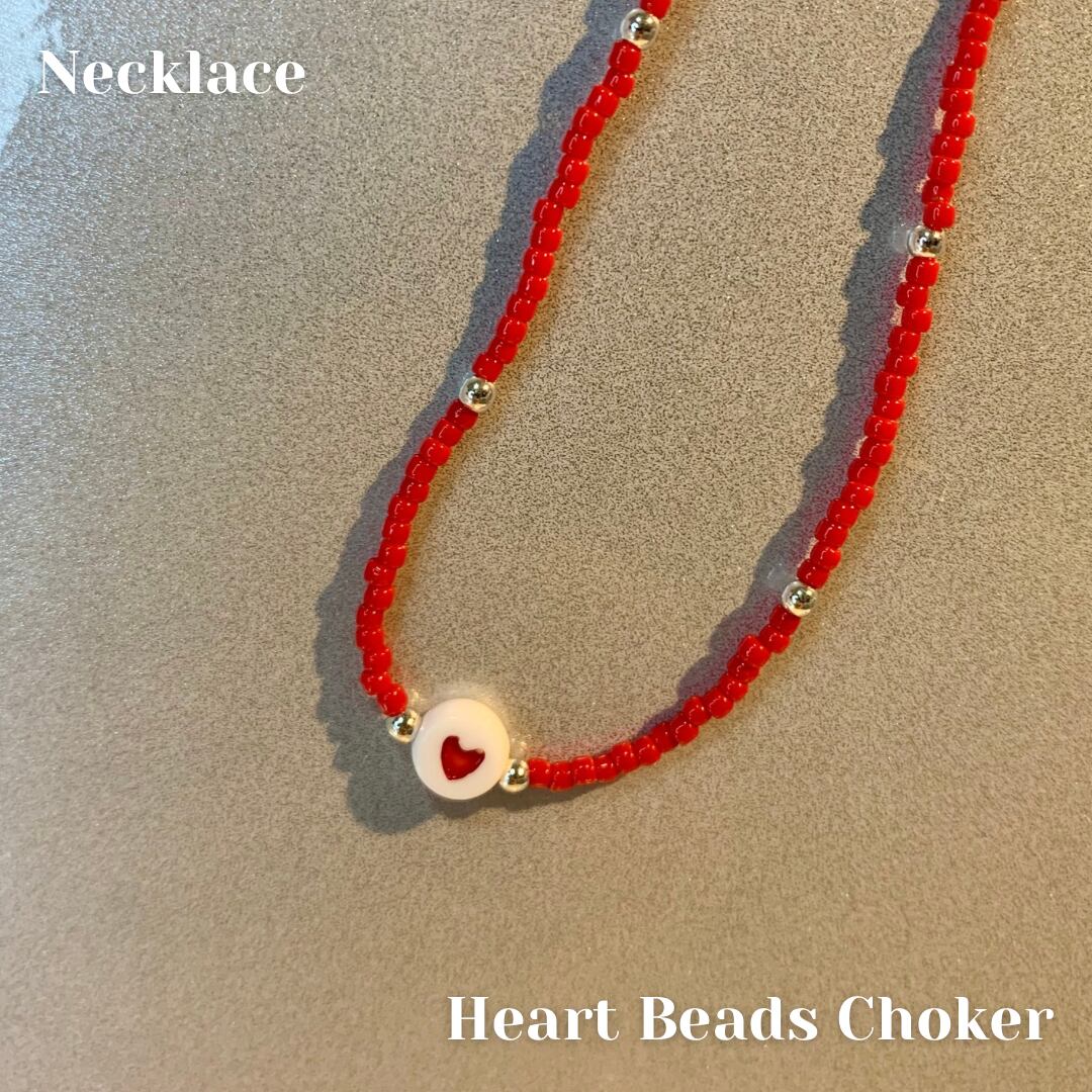 ハートの印字がされたビーズがポイントのポップなビーズチョーカーです。