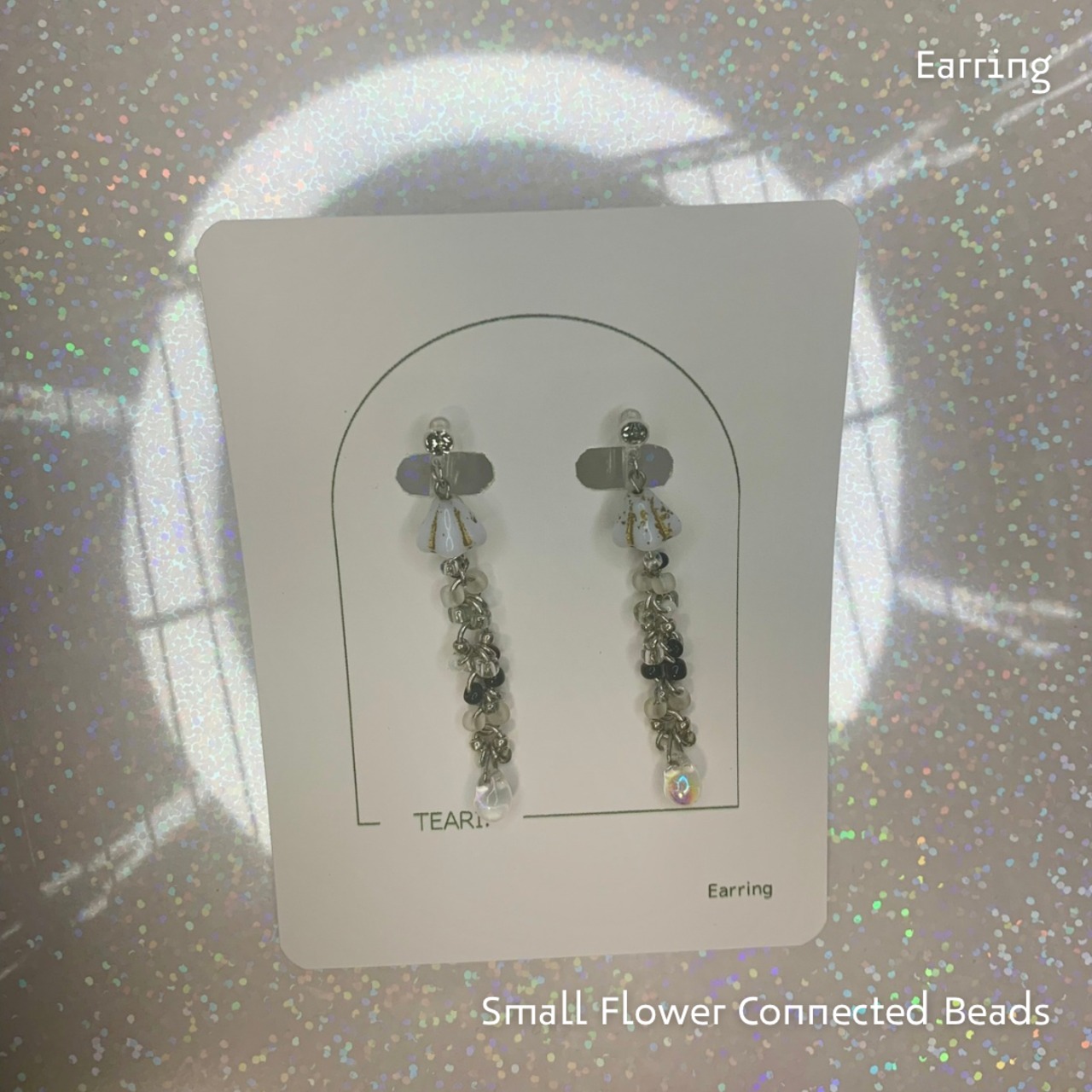 繊細な輝きを放つビーズを贅沢に使用した、エレガントなドロップイヤリングです。