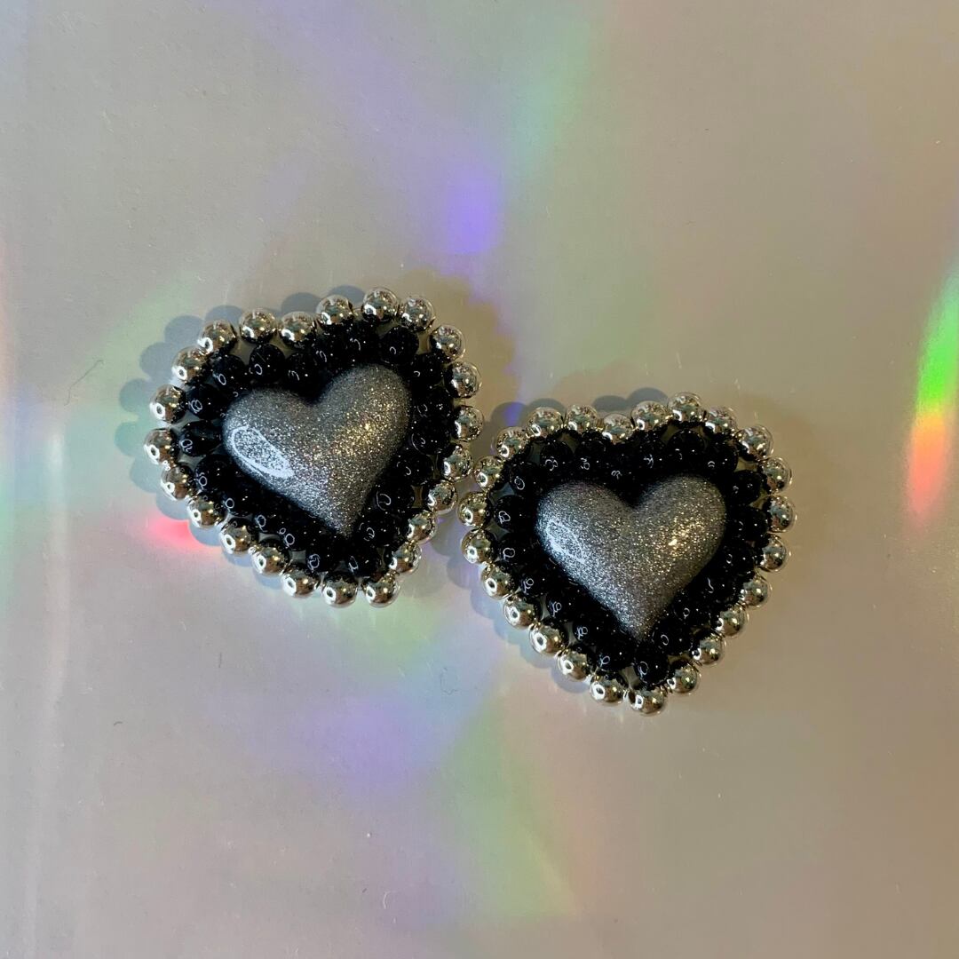 ハートは優雅にカラービーズで縁取られ、エレガンスの要素を加えています。