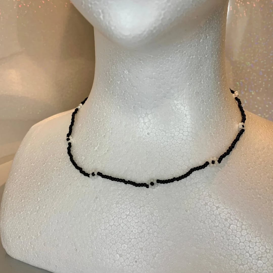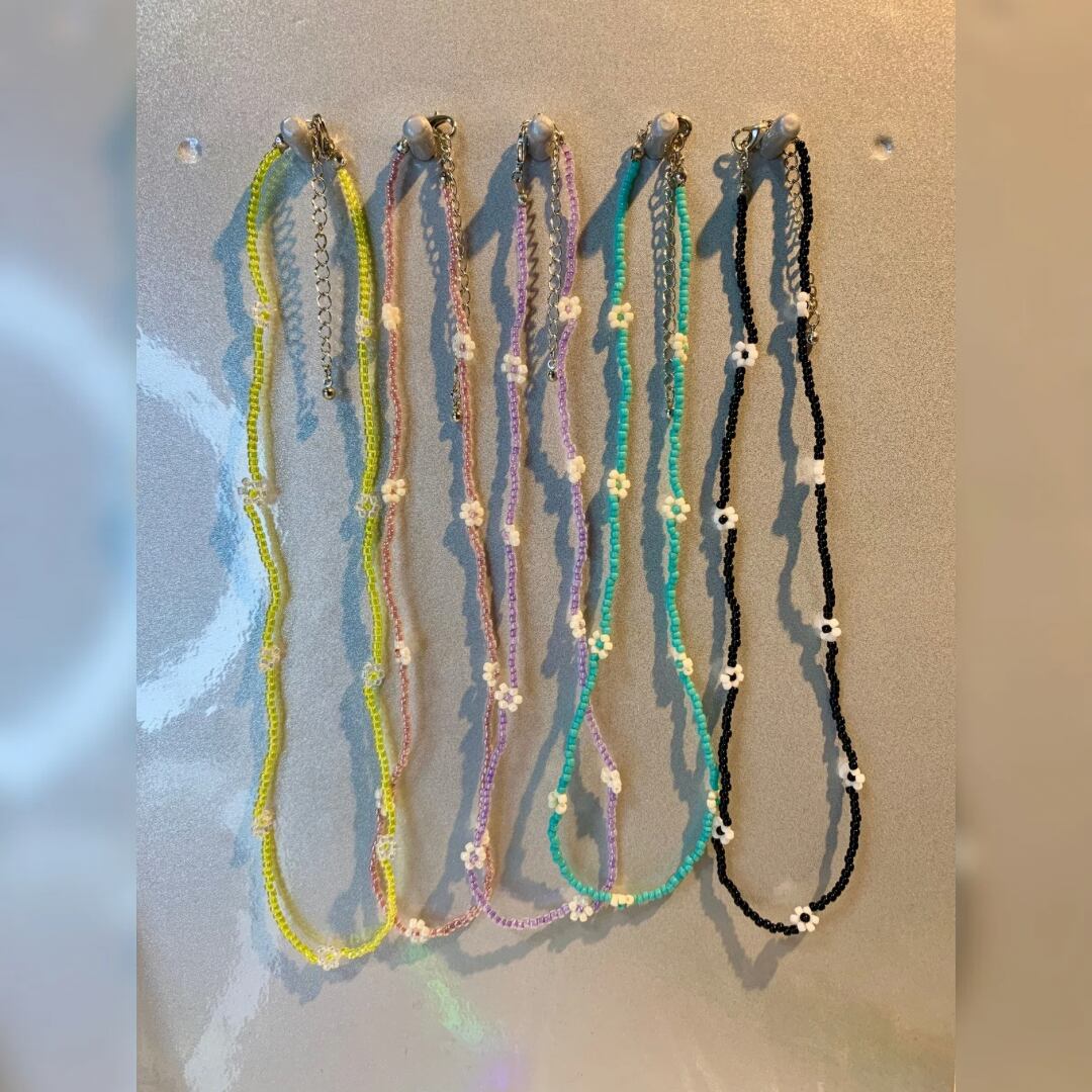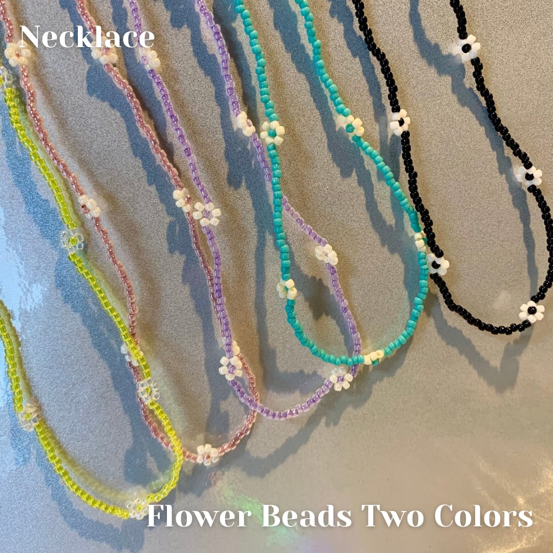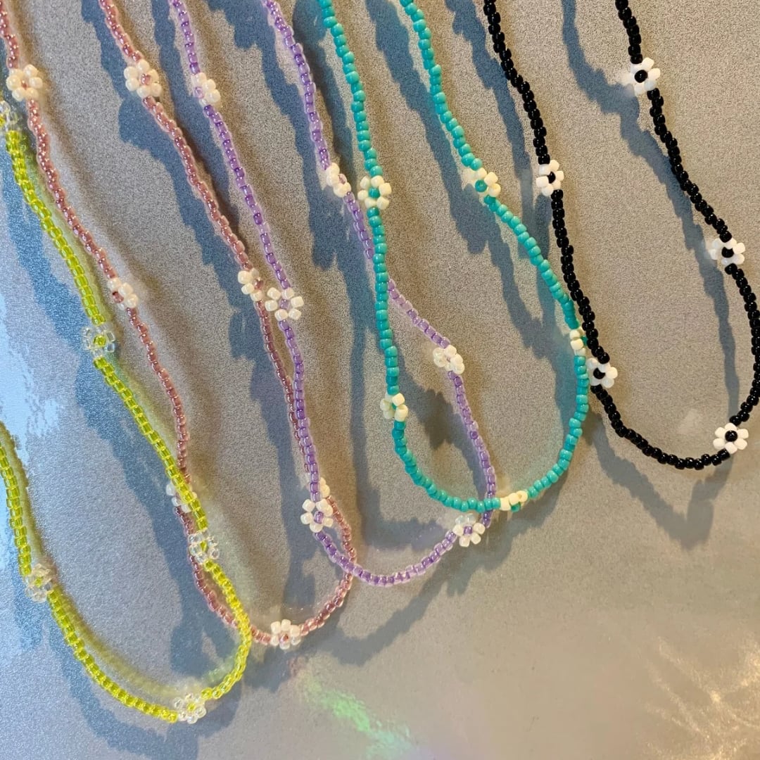 お花がポイントの韓国っぽいビーズネックレスです。