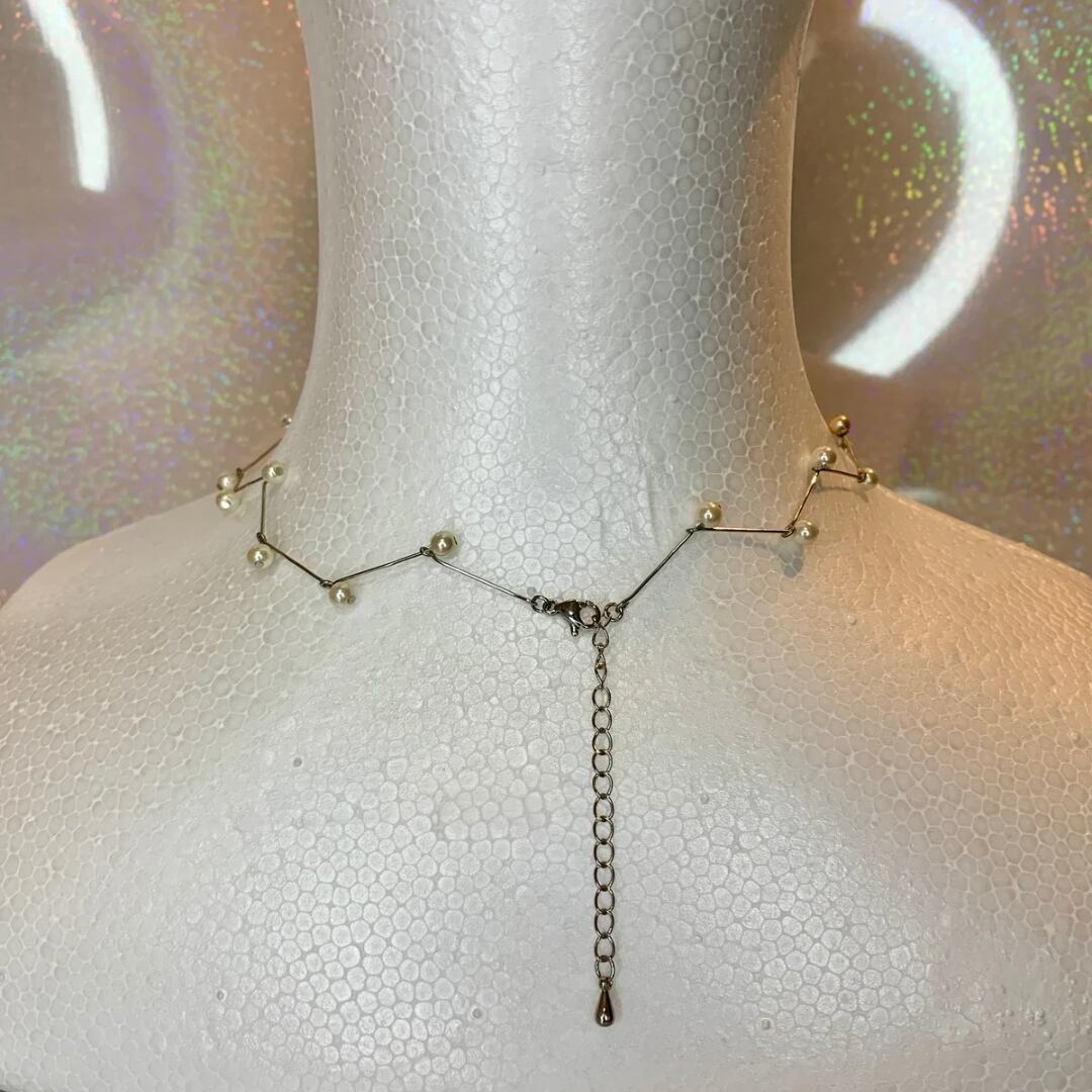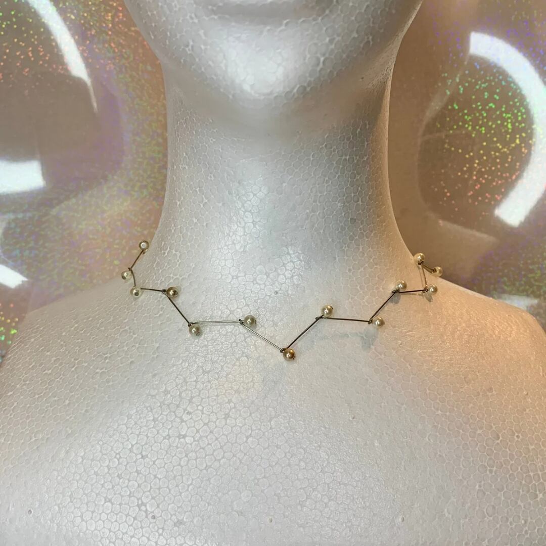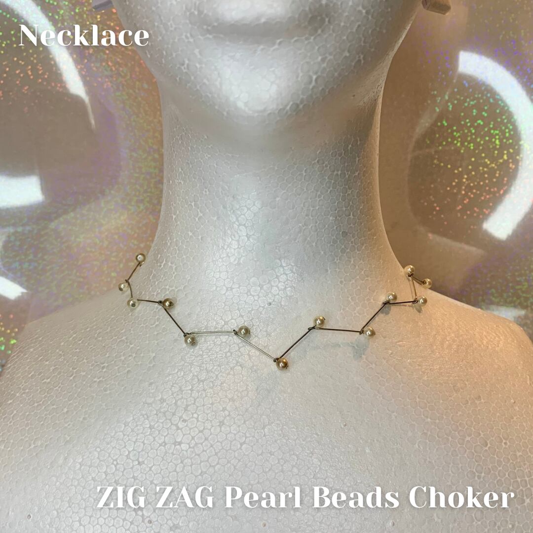 Tピンとパールを組み合わせたジグザグした細めのデザインで華奢見えするネックレスです。