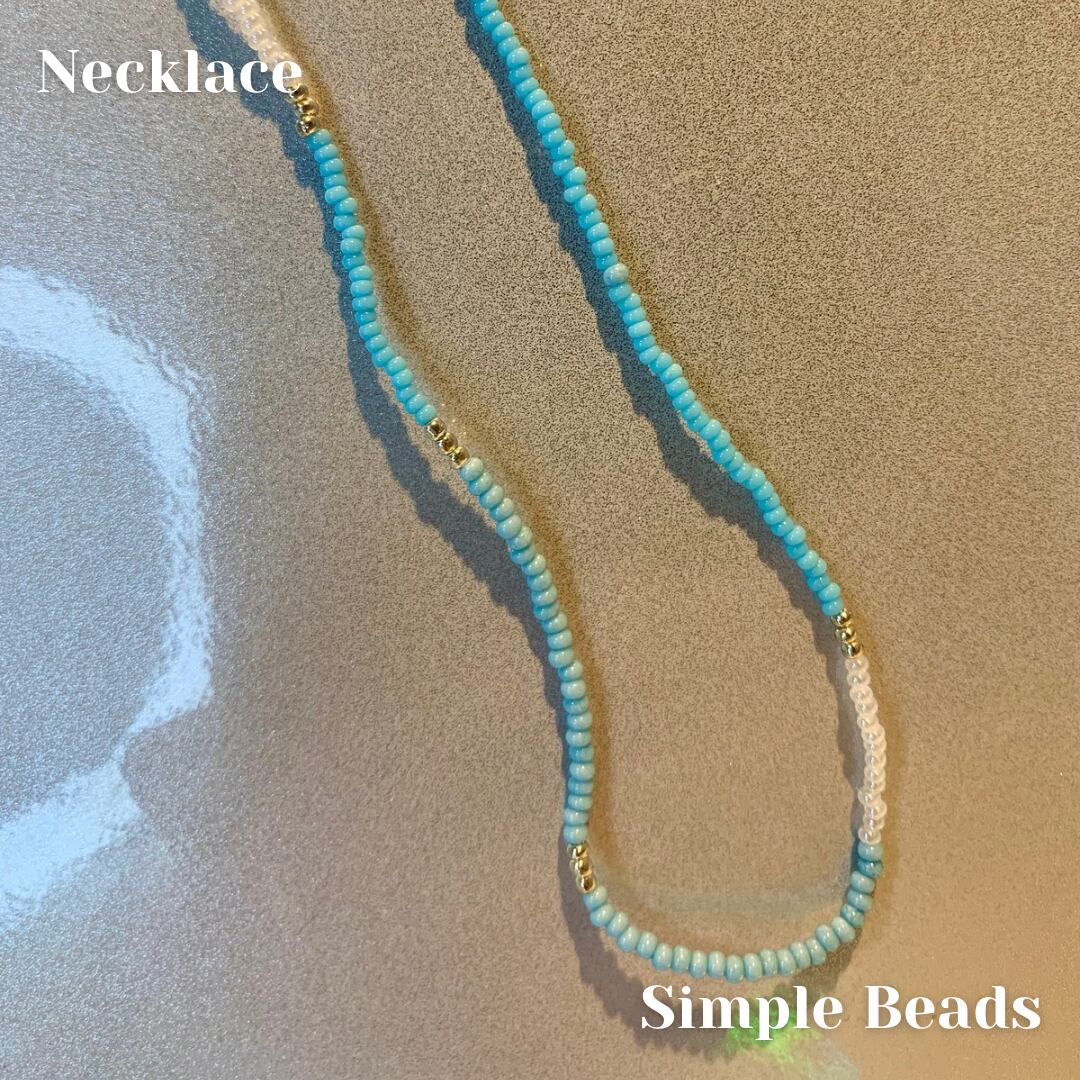 ターコイズ×シルバー×ホワイトのビーズを組み合わせたシンプルなネックレスです。
