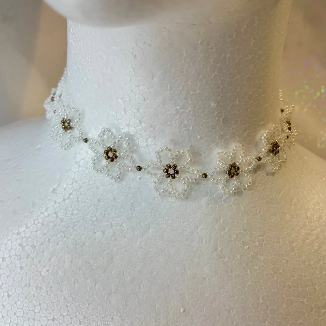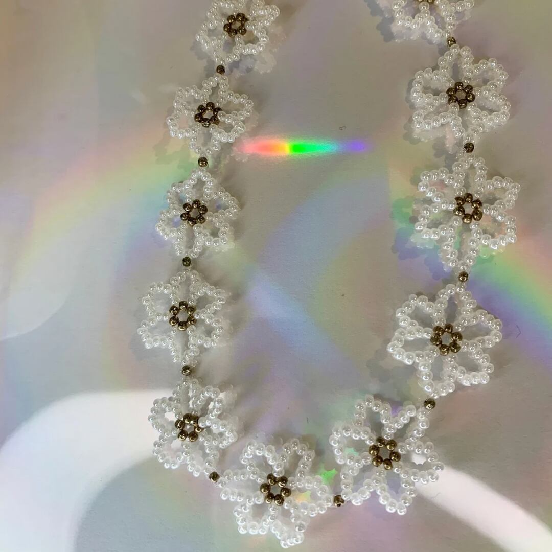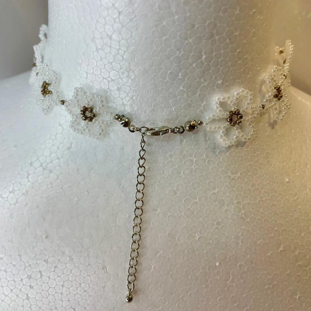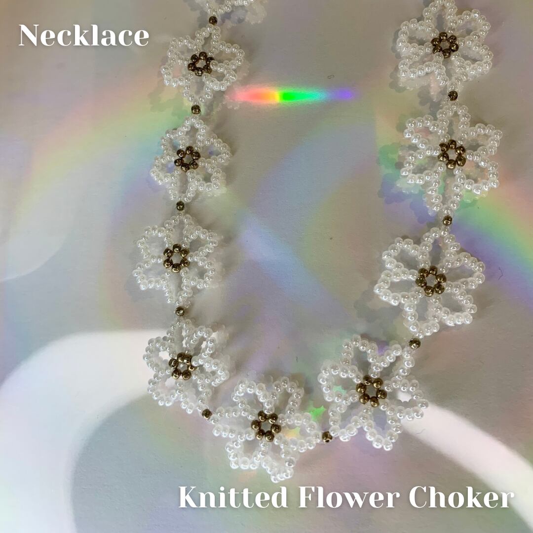 お花の形に編んだビーズフラワーが連結したチョーカーです♪